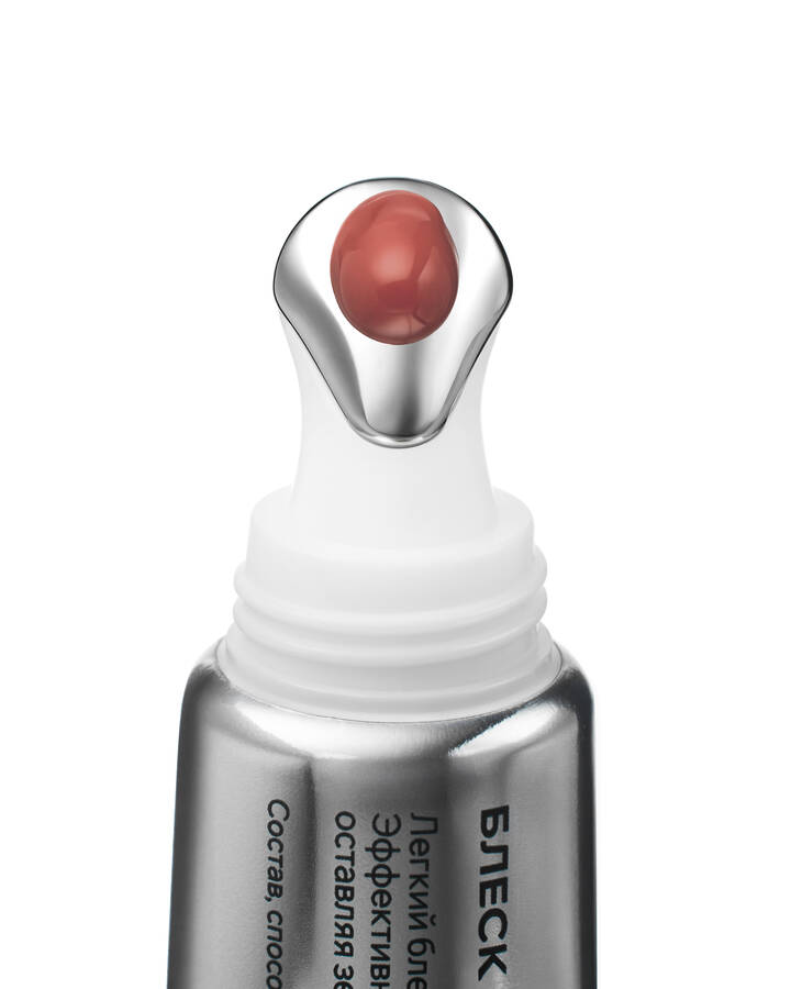 Аккуратно сожмите тюбик, чтобы небольшое количество блеска попало на металлический аппликатор. Равномерно нанесите на губы, следуя от внешнего края губ к центру. Используйте ежедневно как завершающий штрих вашего макияжа.